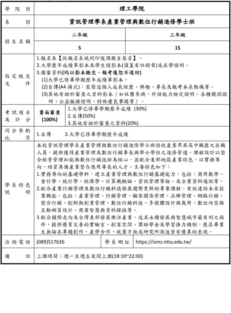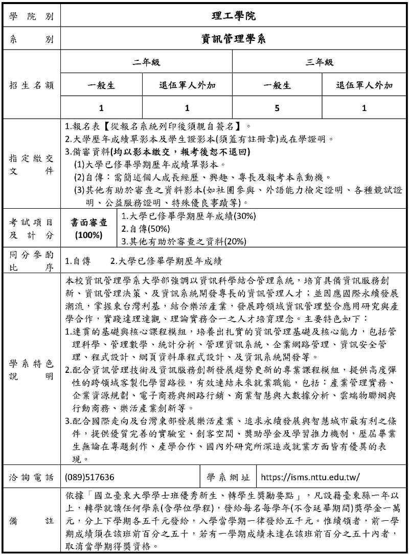 國立臺東大學 資訊管理學系 Department of Information Science and Management Systems